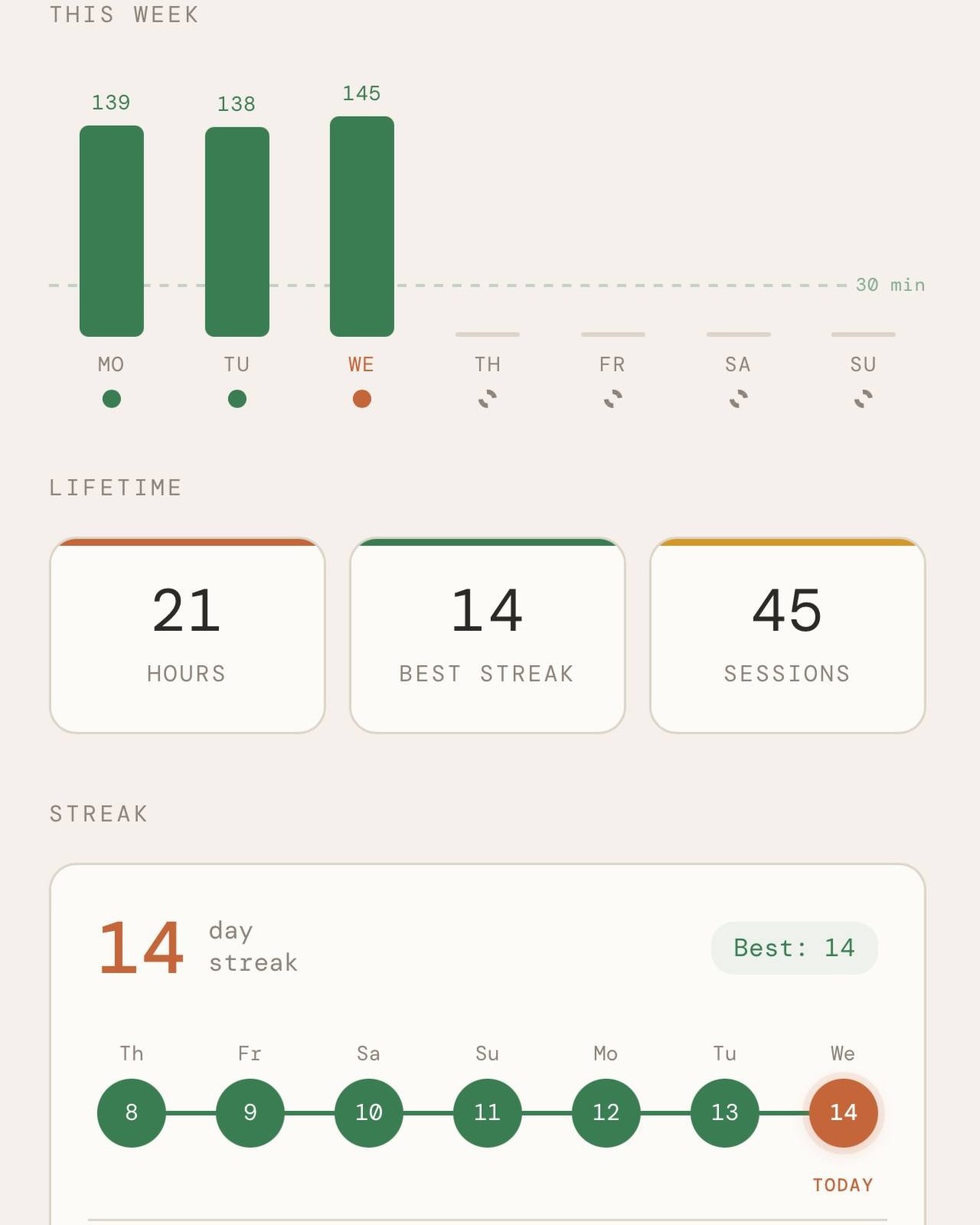 Track your progress and build a streak.