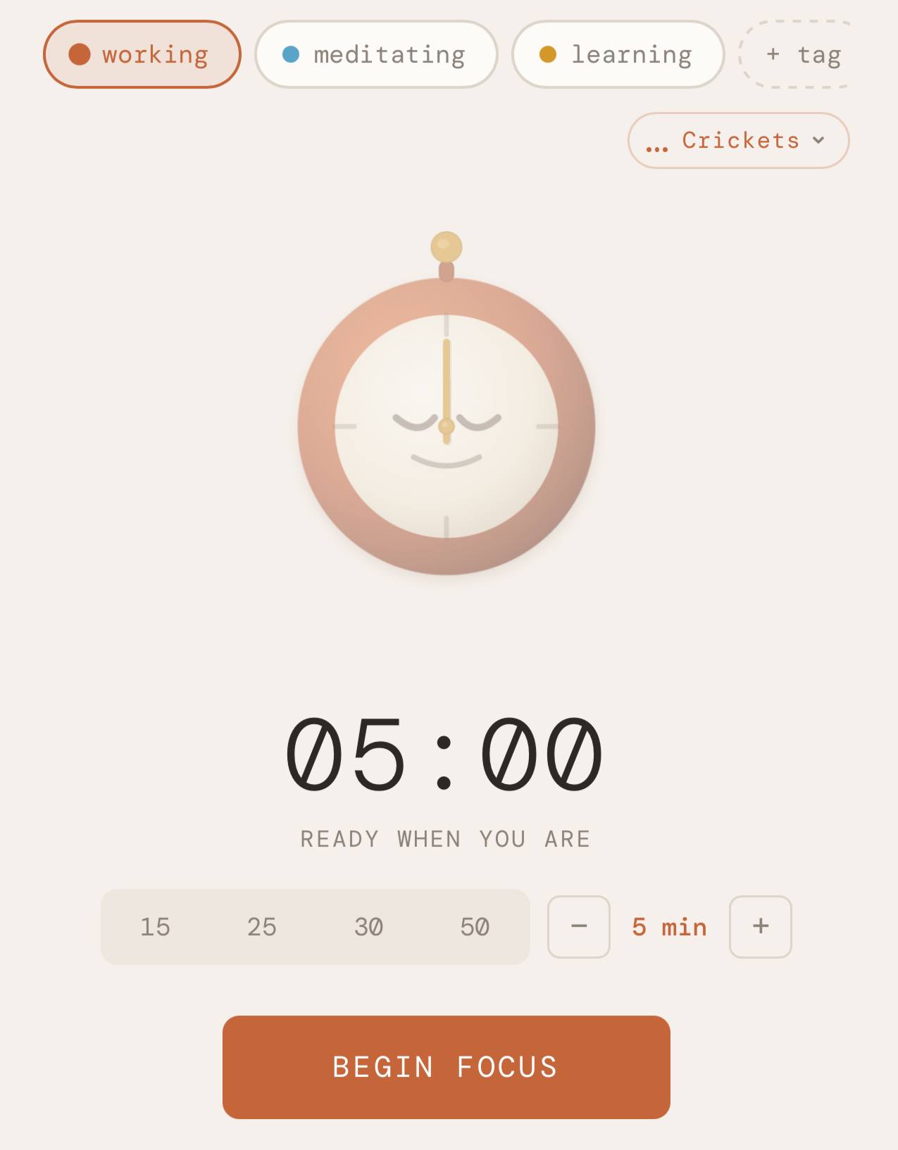 Set a timer, pick a tag, and focus.