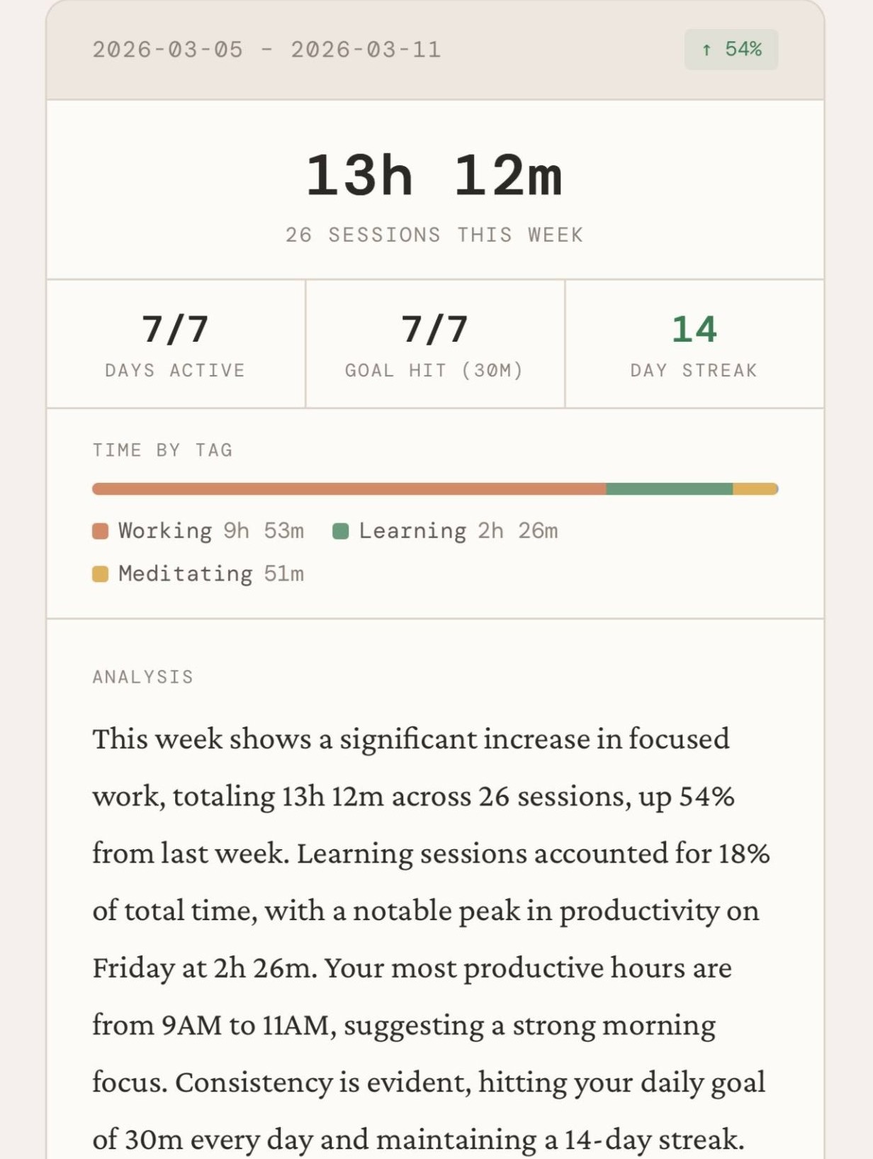 Every Sunday, AI analyzes your week.